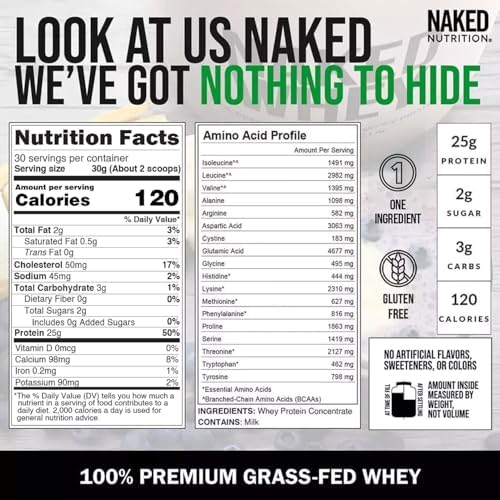 ONLY ONE INGREDIENT: 100% Grass Fed Pure Whey Protein with zero additives. Naked Whey no artificial sweeteners, flavors, or colors and is GMO-Free, No rBGH or rBST, Soy Free and Gluten-Free.