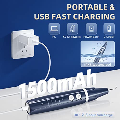 LED light and rechargeable: The dental calculus remover has LED lights on top to see your teeth more clearly. Charging with Type C USB, the 1500 mAh battery don’t require frequent charging.