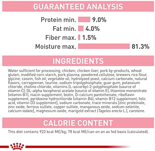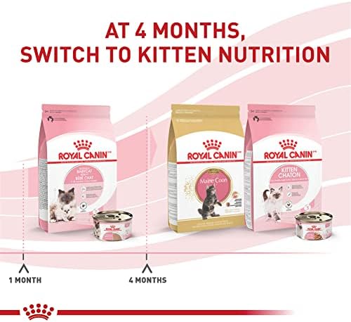 Baby cats grow so quickly that their nutritional needs also change. A mother cat’s milk has protective antibodies to support her kitten’s natural defenses. But as a baby cat transitions to eating solids, their immune systems are still developing. This “immunity gap” leaves a kitten in a fragile state. With growing bones, emerging teeth, and developing immune and digestive systems, they can benefit from nutrition formulated for healthy growth. Your kitten is a kitten for 12 months, no matter their size. Keeping them on this formula for months 1 to 4 starting during weaning helps set up a healthy foundation for kittenhood. Royal Canin Mother & Babycat Ultra-Soft Mousse in Sauce feeds your young kitten’s magnificence from the very start with the building blocks needed for healthy growth: This baby cat food is a tailor-made nutritional solution that supports the high energy needs of queen cats at the end of gestation and during lactation, and the development of newborn kittens during the first stage of growth. Clinically proven antioxidants, including vitamins E and C, help support the healthy development of immune systems. The canned kitten food ultra-soft mousse texture facilitates the transition from milk to solid food for newborn kittens and their baby teeth. Plus, a combination of prebiotics and highly digestible proteins helps promote a healthy balance of intestinal microbiota for digestive health. Feed this formula for months 1 to 4, then switch your kitten to Royal Canin Feline Health Nutrition Kitten food for continued healthy growth. With over 50 years of scientific research and observation, Royal Canin continues to deliver targeted nutrition to feed every pet’s magnificence. Not satisfied? Then neither are we. Our formulas are 100% satisfaction guaranteed. (Just contact us for more details.).