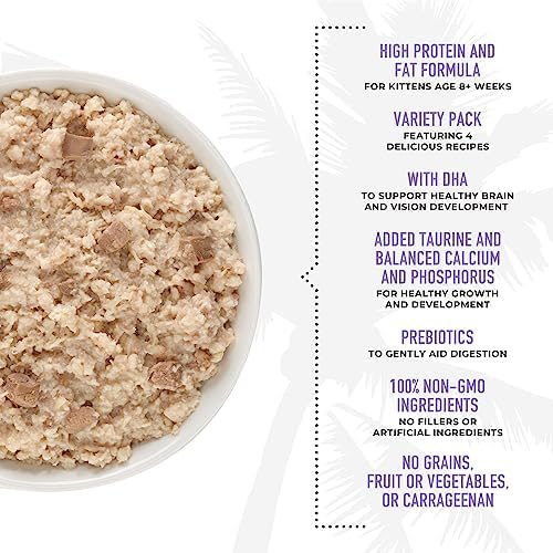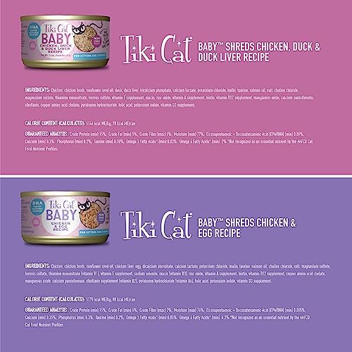 Kittens are born carnivores, but they also have very specific nutritional needs. With increasing energy, developing digestive and immune systems, and growing bodies, they need nutrition designed just for them. Tiki Cat® Baby™ recipes give kittens their best start, with high protein and fat, DHA, added taurine, and prebiotics in a soft, flavorful formula. And, with this variety pack, your kitten can enjoy different flavors and protein sources at each meal!